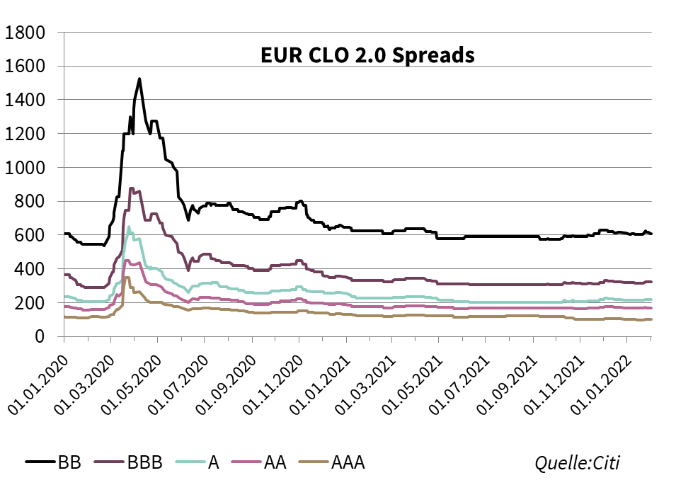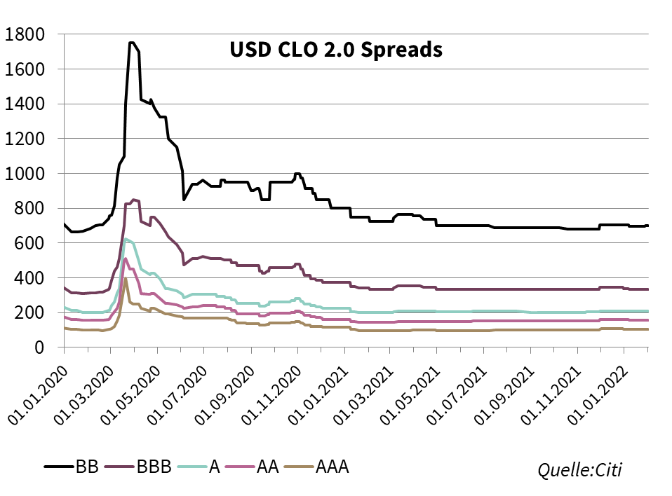 Ab der 2. Januarwoche konnten wir steigende Aktivitäten auf den Sekundärmärkten beobachten. Mit mehr Fokus auf Sub-IG zeigten die Investoren eine starke Nachfrage nach CLO-Tranchen.