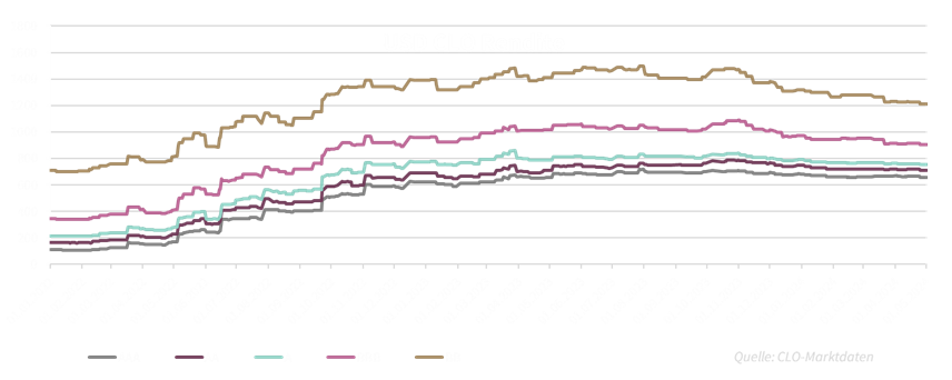 Die CLO-Märkte waren im April mit einer neutralen bis positiven Performance gekenzeichnet. Im non-IG Bereich wurde eine leicht positive Beweguung etwas deutlicher.