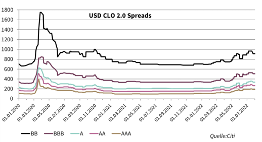 Nach den sehr starken Marktbewegungen im Monat Juni – mit einem enormen Zinsanstieg innerhalb sehr kurzer Zeit und einer Aktienmarktschwäche mit 1-1 Repricing der Risikoprämien Kreditspread – kam es in der Folge im Monat Juli zur Gegenbewegung. Die CLO-Märkte reagierten etwas nachgelagert. Seit Ende Juli sieht man jedoch auch hier spürbares Interesse und anziehende Preise.
