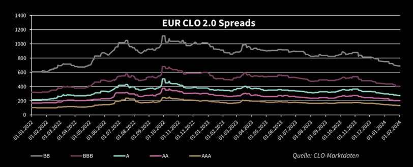 Die CLO-Märkte sind mit einer äußerst starken Rallye ins neue Jahr gestartet. Die CLO-Spreads haben sich je nach Ratingkategorie um bis zu 80 Basispunkte eingeengt.