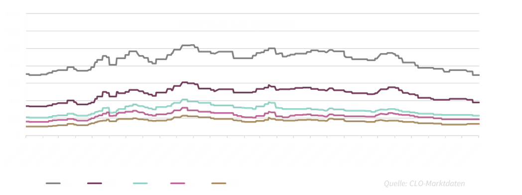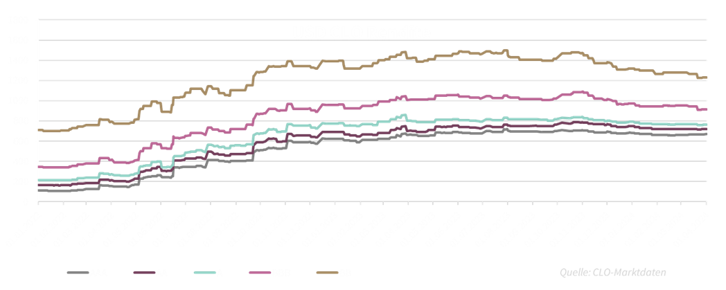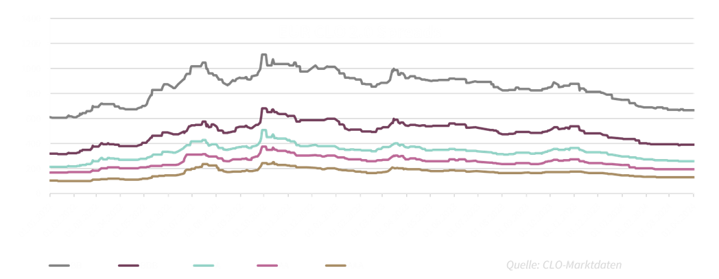 Der Monat März und vor allem die Wochen um die Osterfeiertage fallen in der Regel ruhiger aus. Viele verabschieden sich nach einem sehr guten, aber auch sehr geschäftigen 1. Quartal in die ersten Ferien. Die CLO-Mandate haben ihre Verzinsung vereinnahmt. Die CLO-Kreditspreads verharrten tendenziell in einer Seitwärtsbewegung.