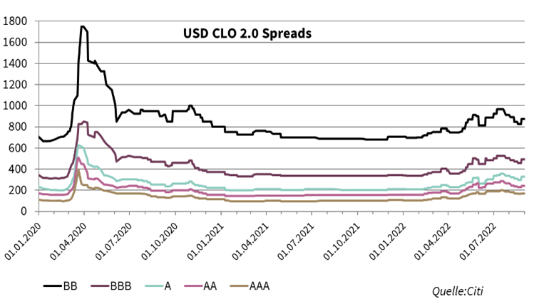 In der zweiten Augusthälfte gab es einige CLO-Spread-Ausweitungen zu beobachten. Die Entscheidungen der Zentralbanken bezüglich der Zinspolitik werden mit Verzögerung an den CLO-Märkten eingespielt.