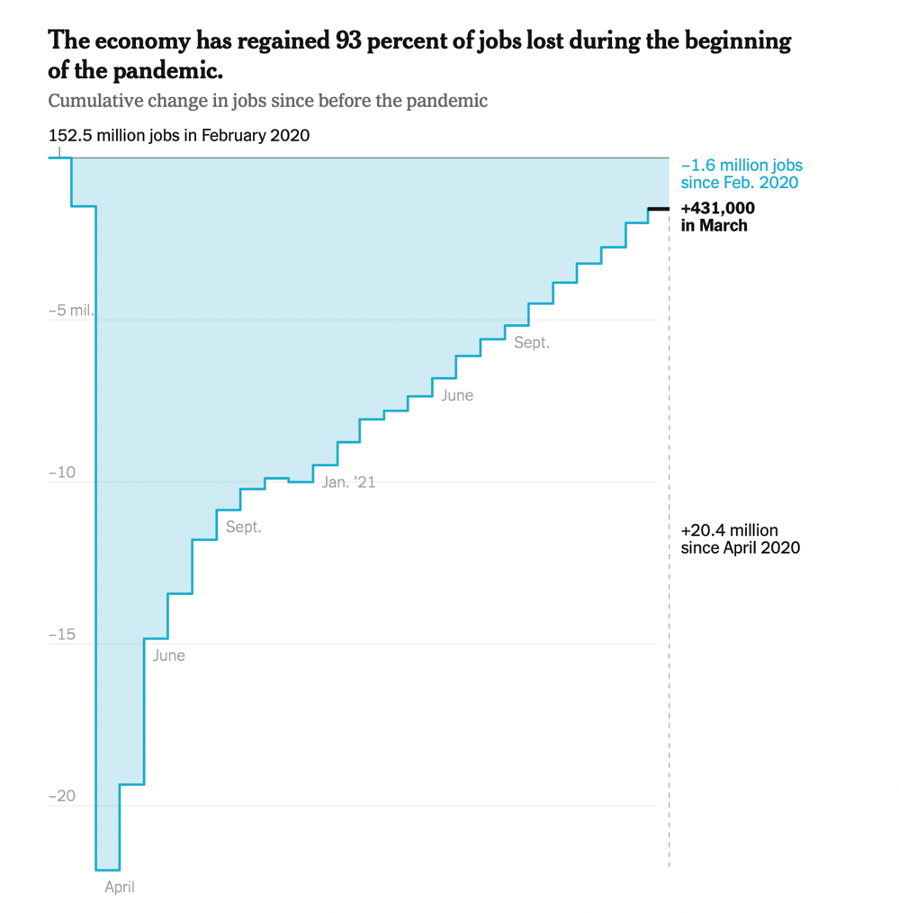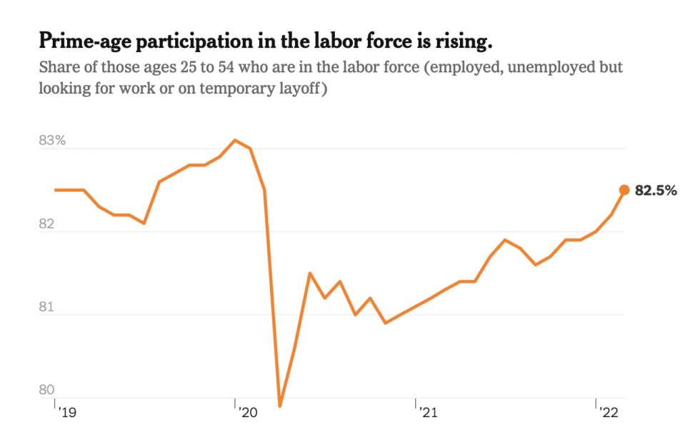 Hintergrund: In den USA hat sich der Jobmarkt weiter erholt. Die Jobverluste in der Pandemie wurden fast vollständig aufgeholt und das bei einer Steigerung der Löhne von über 12 % *(„nonsupervisory workers). Die Teilnahme am Arbeitsmarkt bei den 24-54-Jährigen liegt bei 82.5% – vor der Pandemie 83% und das bei circa 10 Mio. Arbeitskräften, die dem Arbeitsmarkt verloren gegangen sind (the big resignation – siehe vorherige Ausgaben).