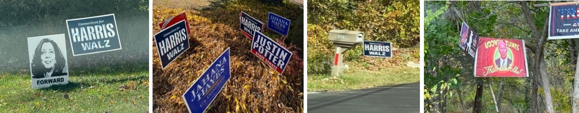 In diesem Jahr hat sich die Situation verändert. Es ist ruhiger. Die Anzahl der Wahlplakate und sichtbaren Unterstützer beider Parteien ist geringer. Während die Unterstützer der Republikaner eher zurückhaltend sind, sieht man deutlich mehr „Committment„ durch Plakate in den Vorgärten.